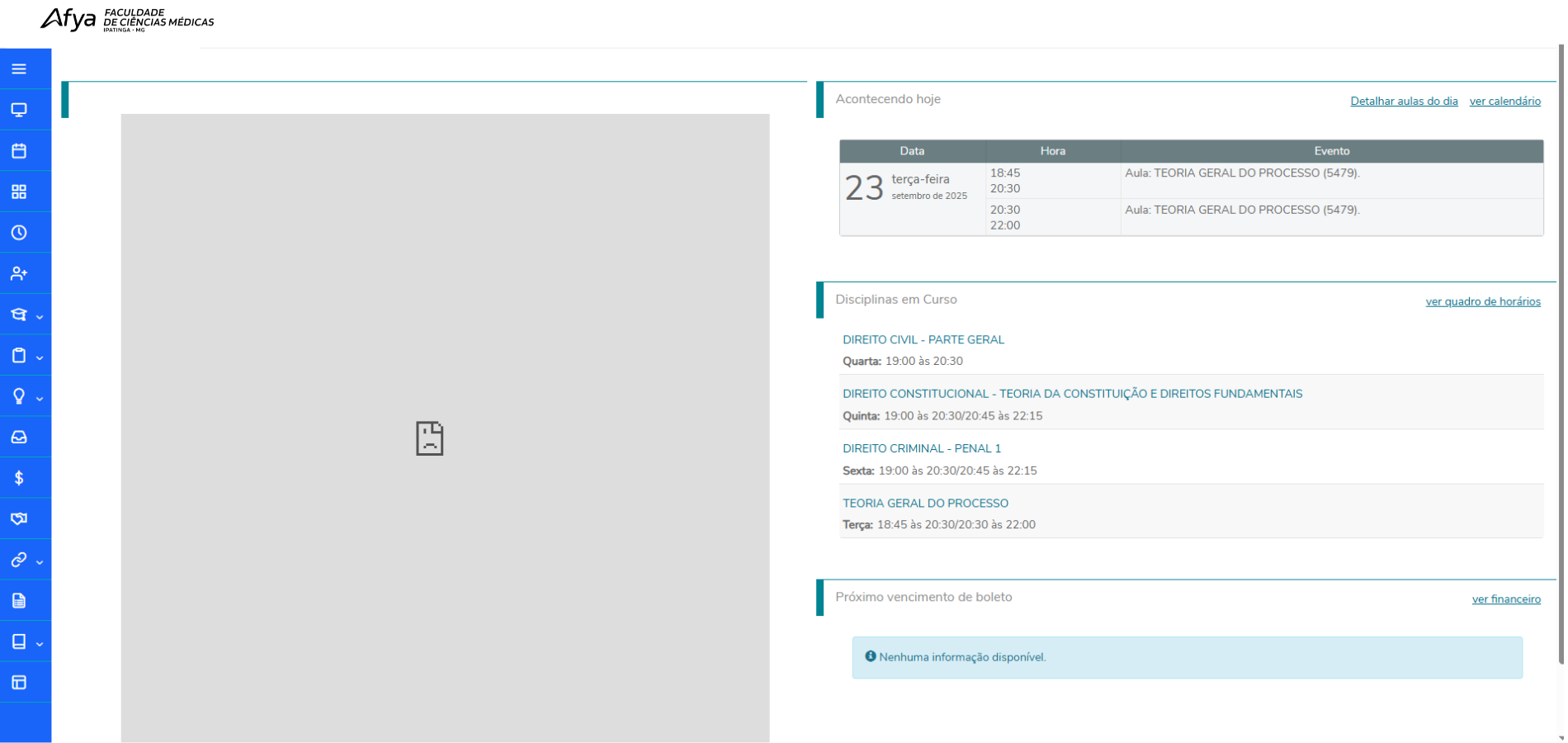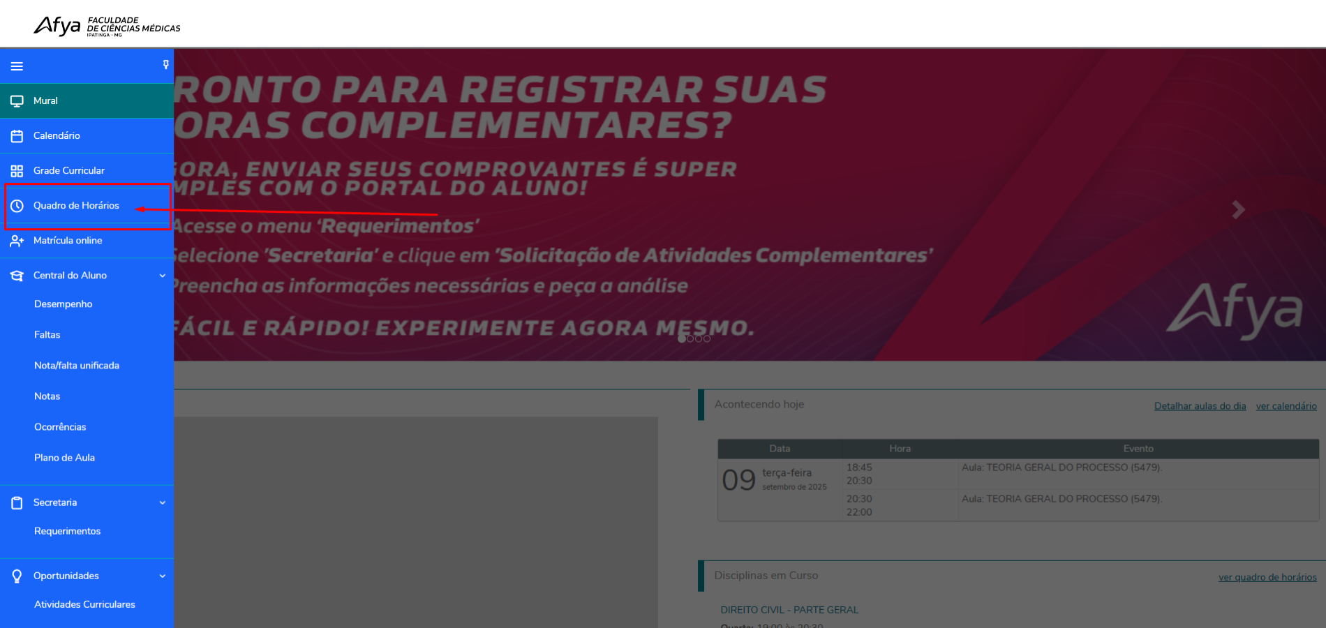 - Acessar integrações com a AIA (Academia de Idiomas Afya), o BioAtlas e a Biblioteca Virtual.